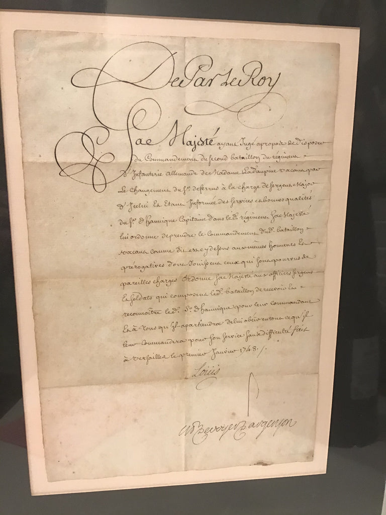 His Majesty, having found it suitable to have at his disposal the command of the second battalion of the German Regiment of Madame la Dauphine will make the change of Monsieur De Ferrus to the rank of quartermaster sergeant. And being informed of the quality of the services of Monsieur d'Hannique, Captain in the regiment of His Majesty, orders him to take command of the said battalion, receiving thus the same honors and privileges that those provided with such a charge enjoy. His Majesty orders the officers, sergeants and soldiers that make up the said battalion to receive and recognize Monsieur d'Hannique as their commander, and to all of them to obey him without difficulties in everything that he will command them under his charge.