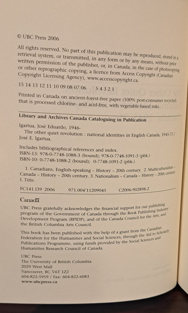 The Other Quiet Revolution: National Identities in English Canada 1945-71
